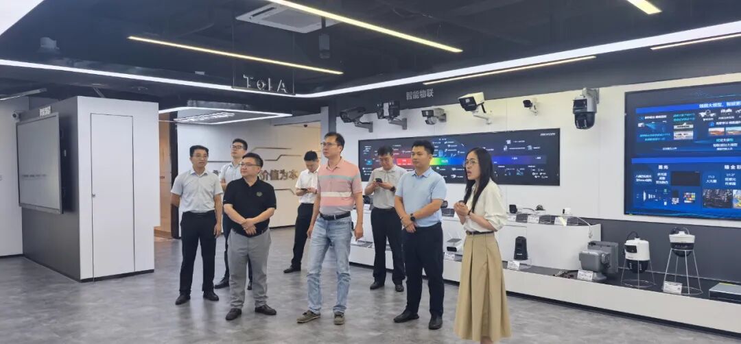 在海康威视广州分公司相关负责人的陪同下,调研组参观了海康威视的企业展厅,全面了解该公司在智能安防领域的最新技术成果。现场着重展示了高清视频监控系统、AI智能分析平台和大数据可视化系统等多项核心技术,并通过实景模拟,演示了这些技术在公共安全防控、智能交通管理和应急指挥调度等实际场景中的应用效果。